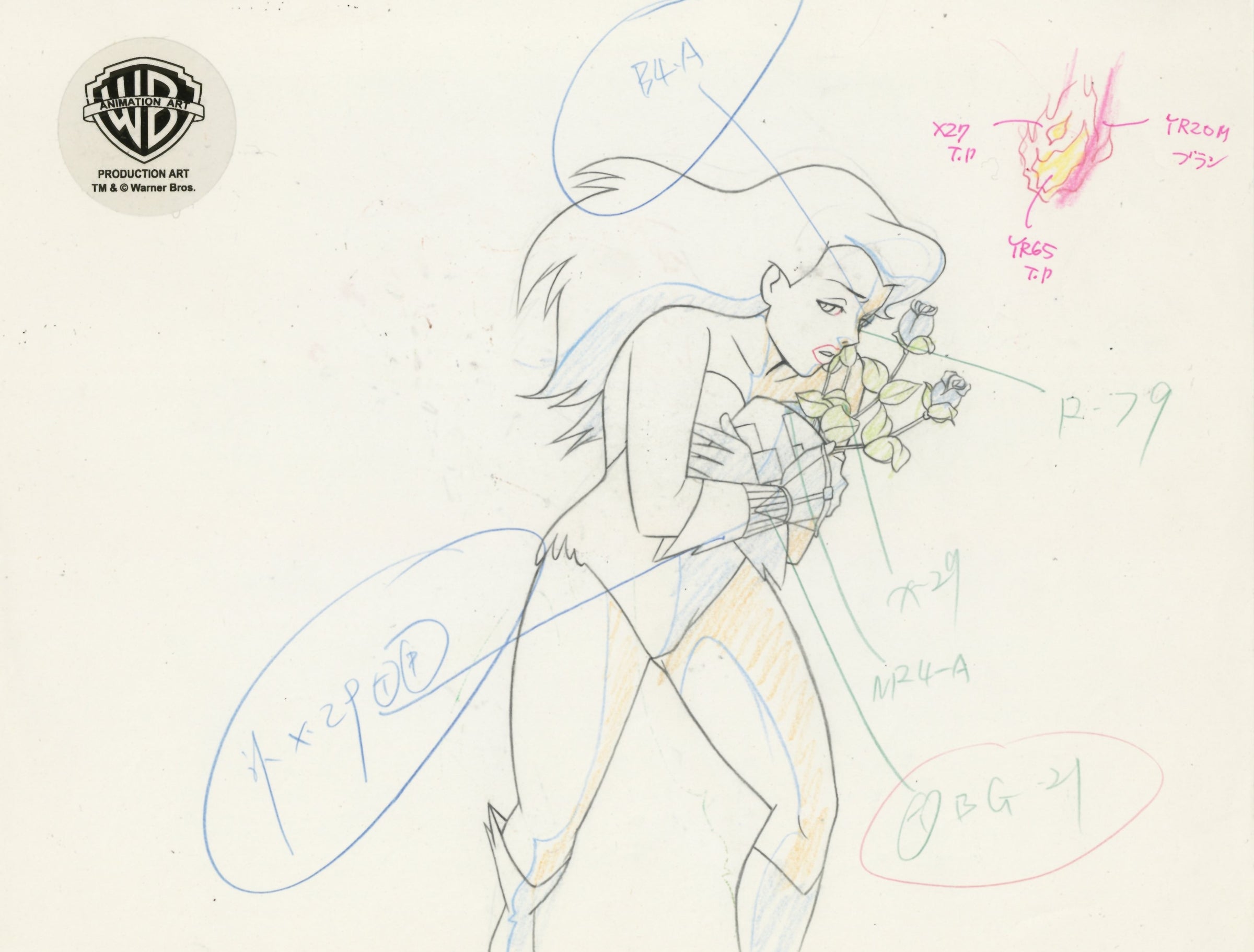 Batman The Animated Series Original Production Cel On Original Background with Matching Drawing: Poison Ivy