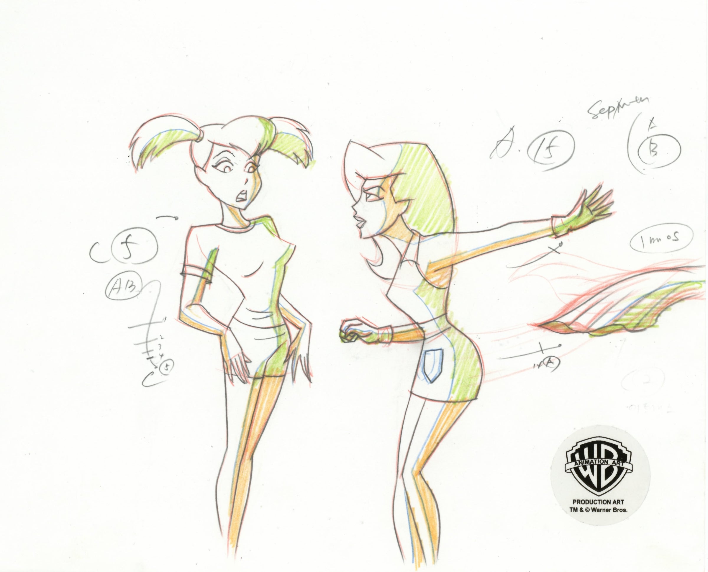 The New Batman Adventures Original Production Drawing: Harley, Ivy