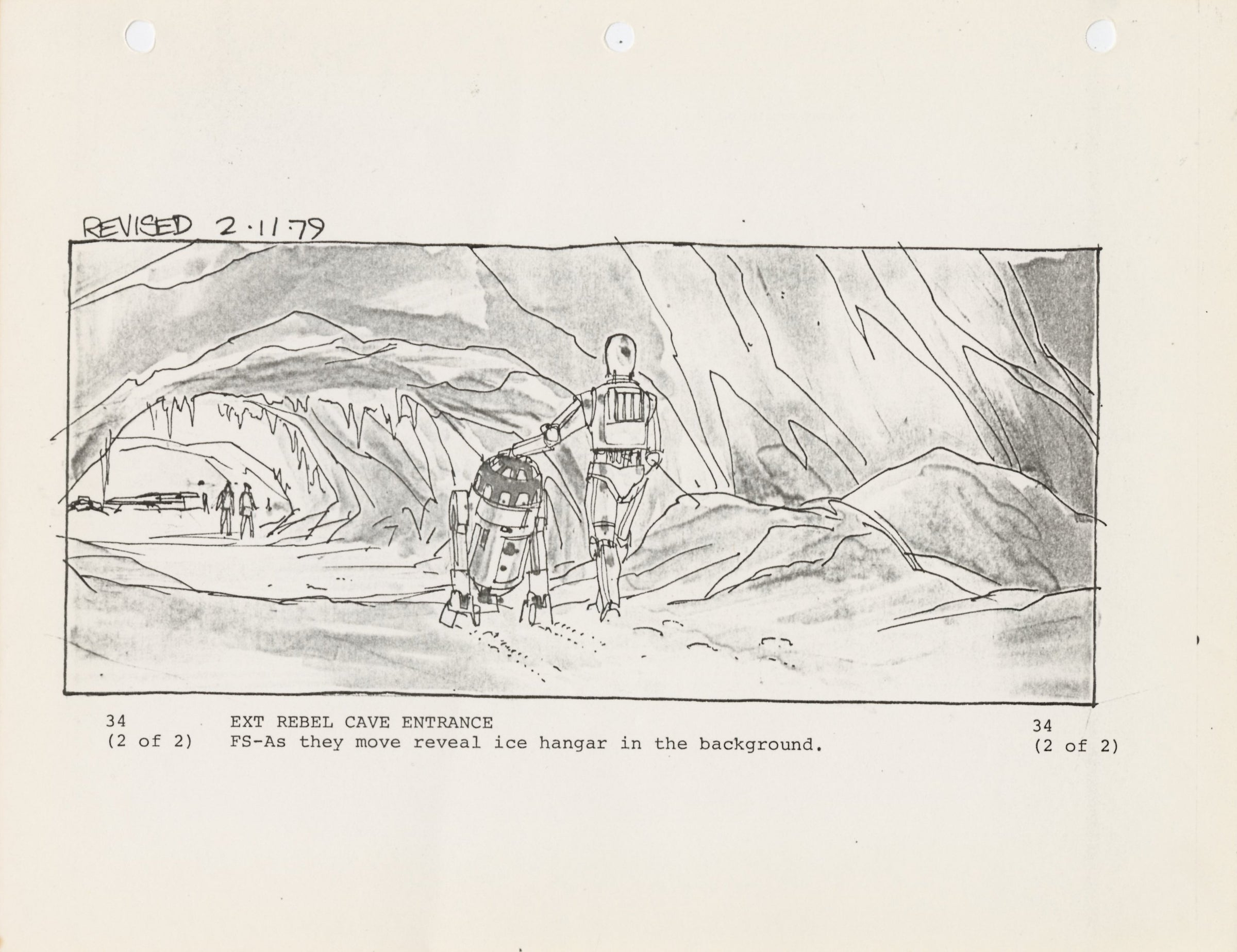 ABOUT THE ART: This early storyboard print comes from the collection of award-winning miniature and optical effects artist Phil Trippett. Trippet was hired by George Lucas as a stop motion animator for the chess scene in Star Wars: A New Hope. Impressed by his work, he was promoted and became the head of the animation department for Star Wars: The Empire Strikes Back where he impressed audiences with terrifying AT-ATs and lively otherwordly aliens such as the tauntauns on Hoth. Trippett continued his work on the Star Wars trilogy and earned his first Academy Award for Visual Effects for Star Wars: Return of the Jedi.