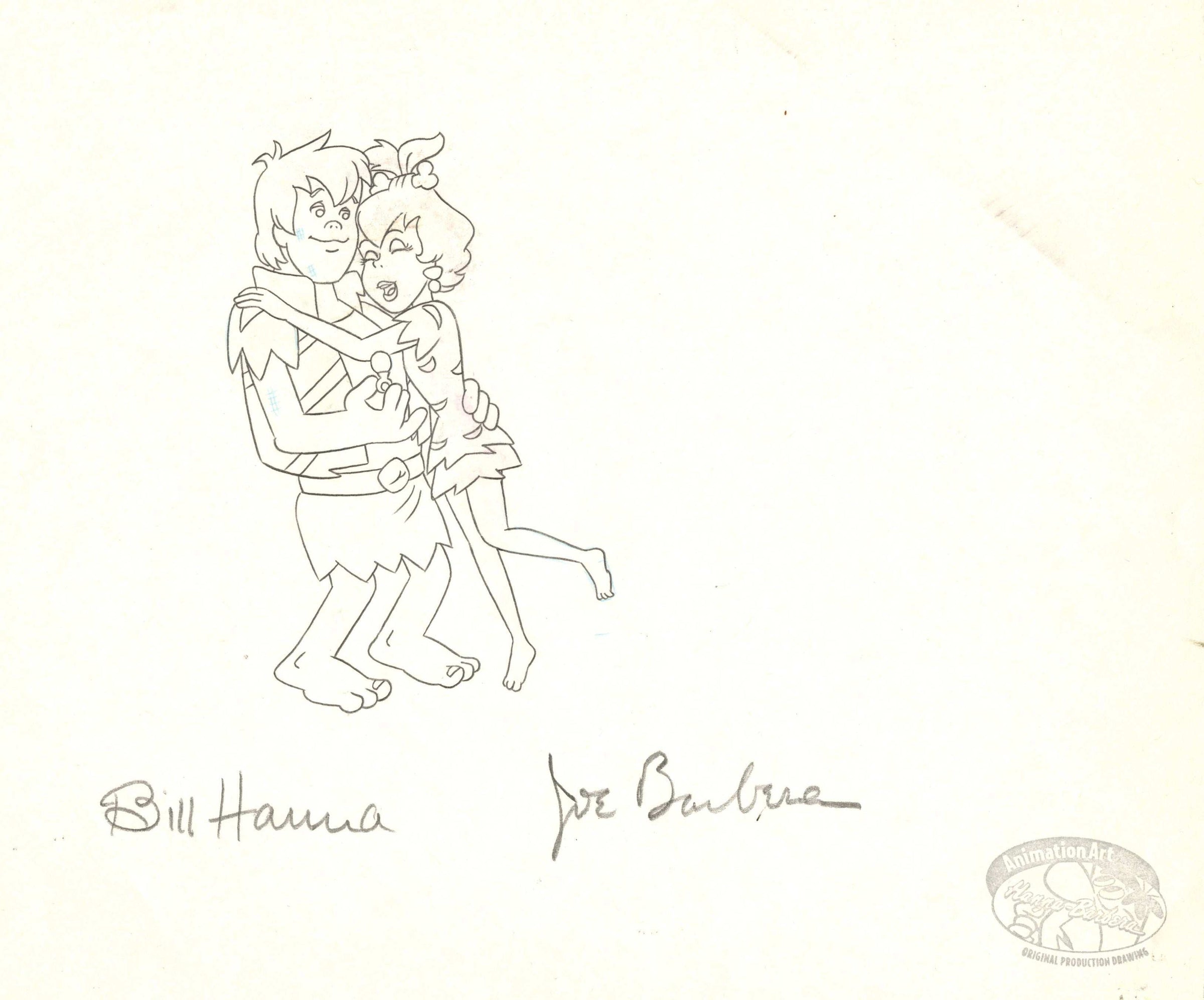 I Yabba-Dabba Do! Original Production Drawing Signed Bill Hanna and Joe Barbera: Bamm-Bamm, Pebbles