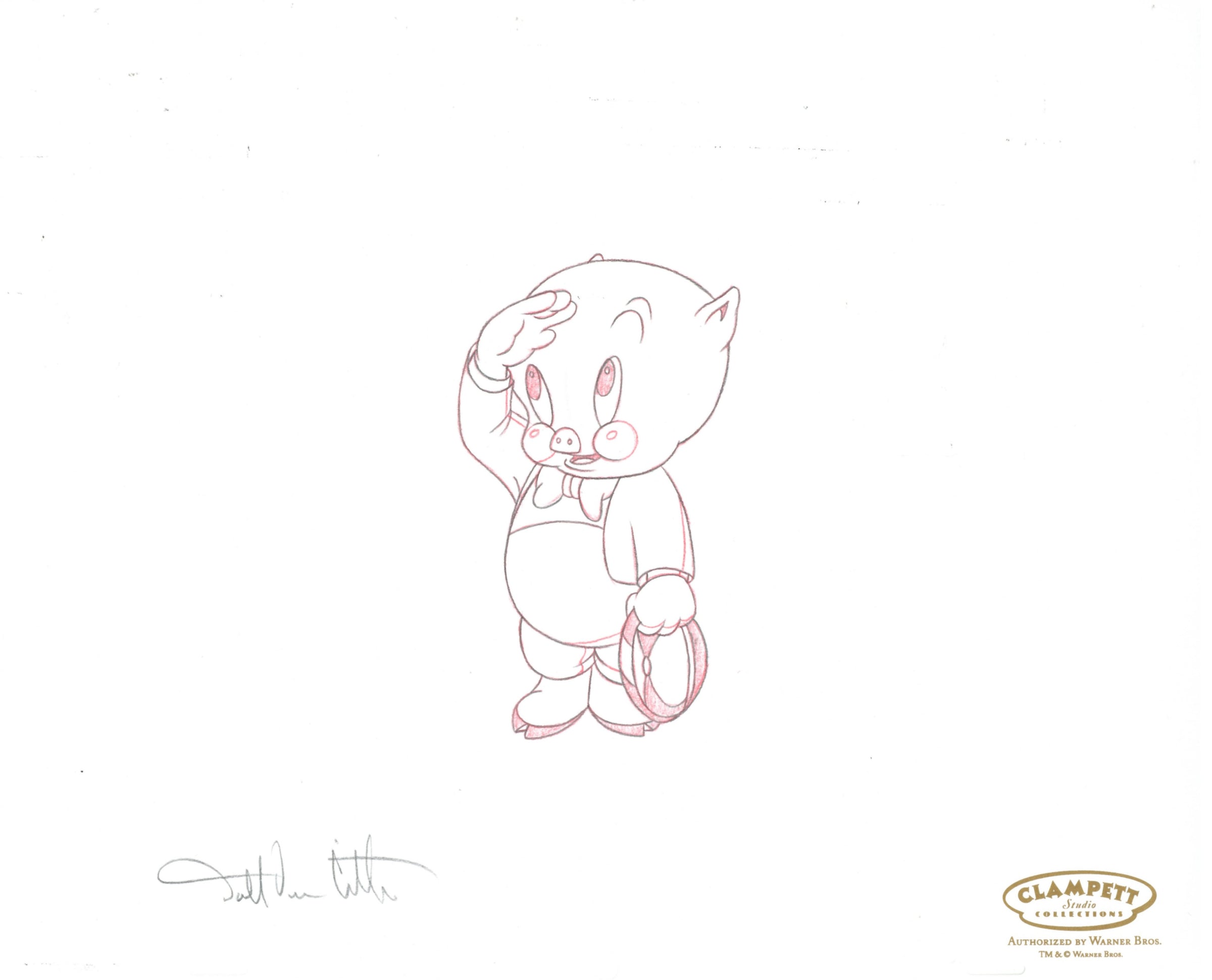 Porky Pig Original Drawing Signed by Darrell Van Citters Based on "Old Glory" (1939)