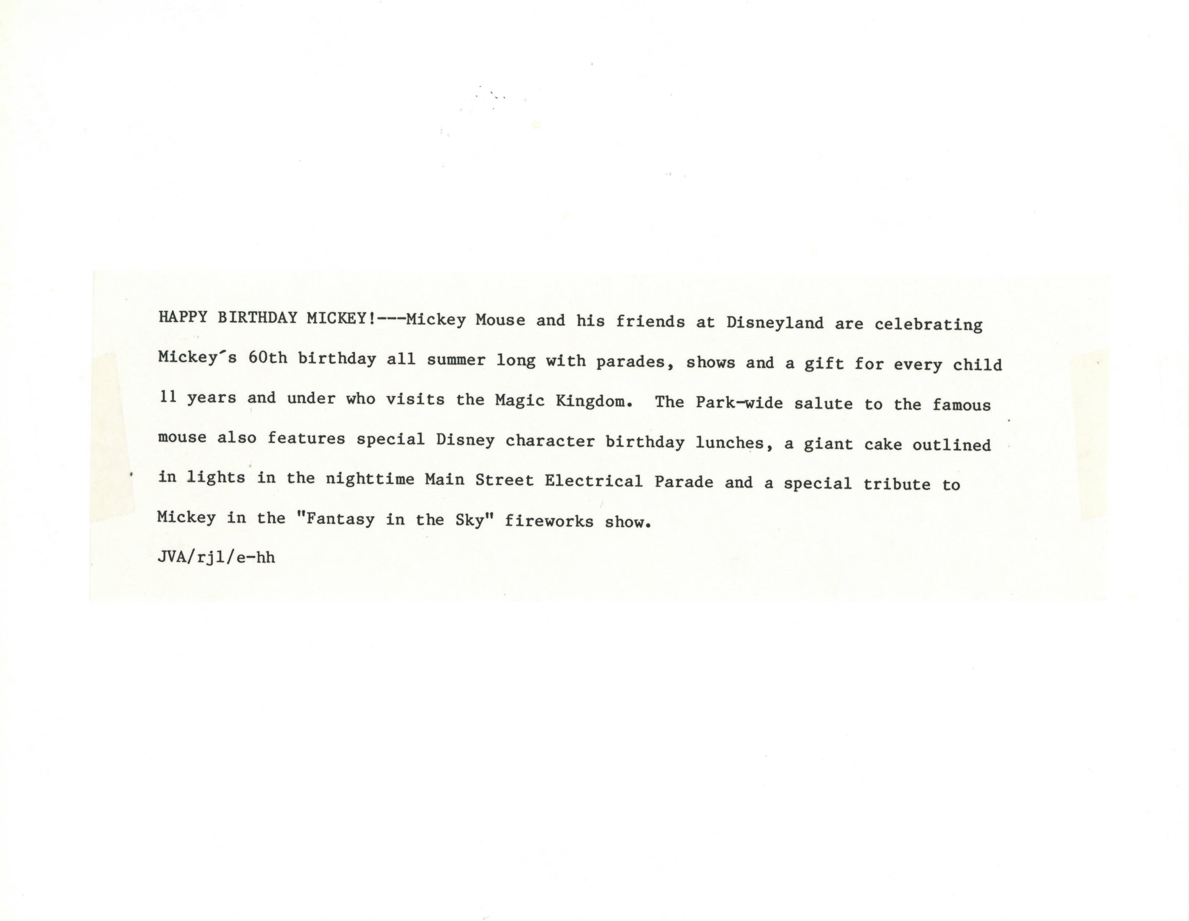 Disney Publicity Photo (1988): Happy Birthday Mickey