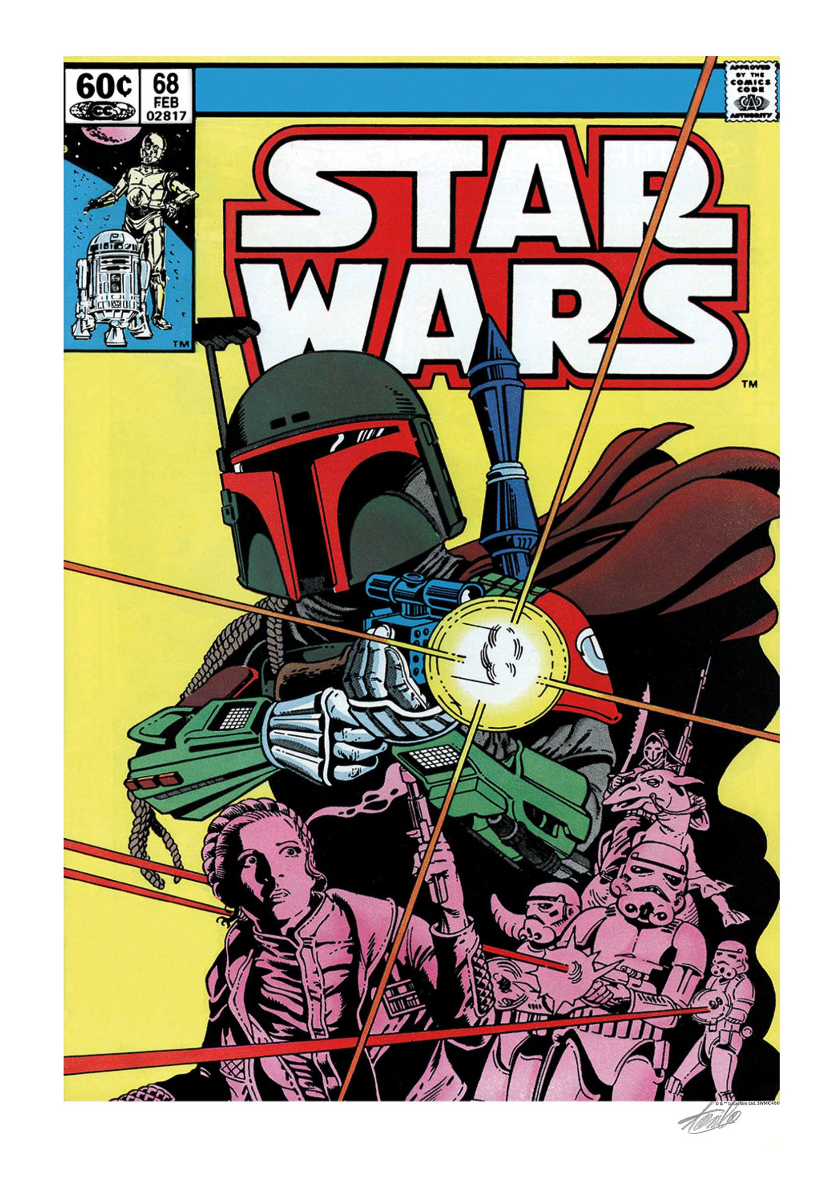 ABOUT THE IMAGE: In 2015, a limited edition portfolio of six Star Wars-themed fine art prints was released, each hand-signed by the legendary Stan Lee. These prints are significant art collectibles that fuse the world of Star Wars with Stan Lee’s iconic status as Editor in Chief of Marvel, the publisher of these very artworks. Printed on premium fine art paper, each piece measures approximately 24 by 16.5 inches and was produced in a standard edition of 295, with a smaller number of proofs also created.
