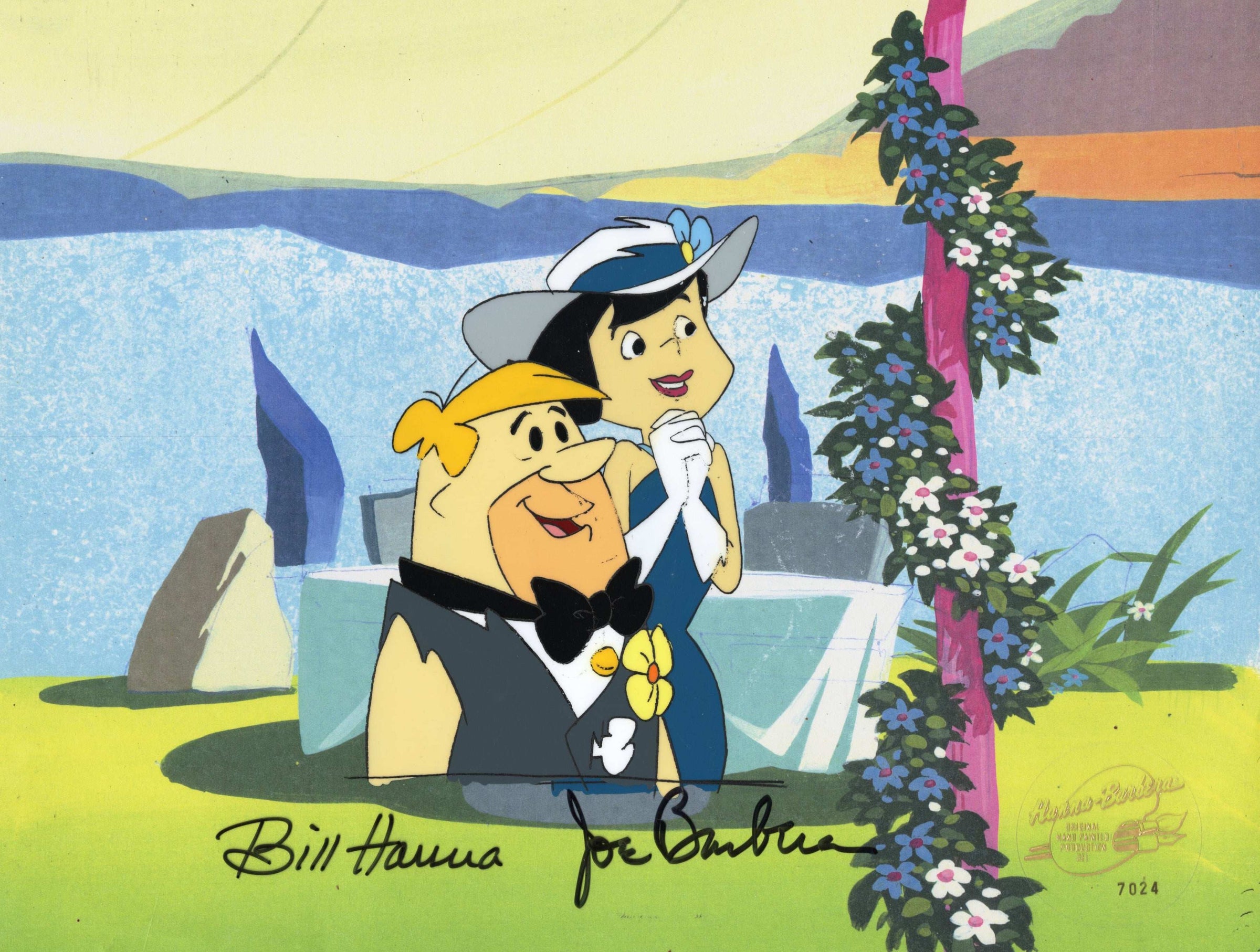 I Yabba-Dabba Do! Original Production Cel Signed by Bill Hanna and Joe Barbera: Barney and Betty
